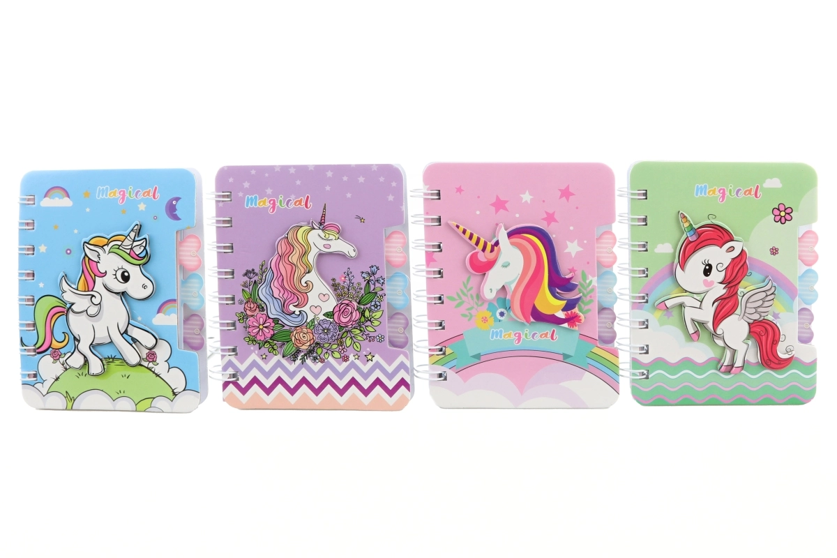 Každý kus prichádza v niektorom z viacerých kúzelných dizajnov „Magical“ s hviezdičkami, dúhou a obláčikmi – dodávame podľa aktuálnej skladovej dostupnosti. Vďaka malému formátu je ideálny na nápady, zoznamy, poznámky z hodín aj drobné kresby.