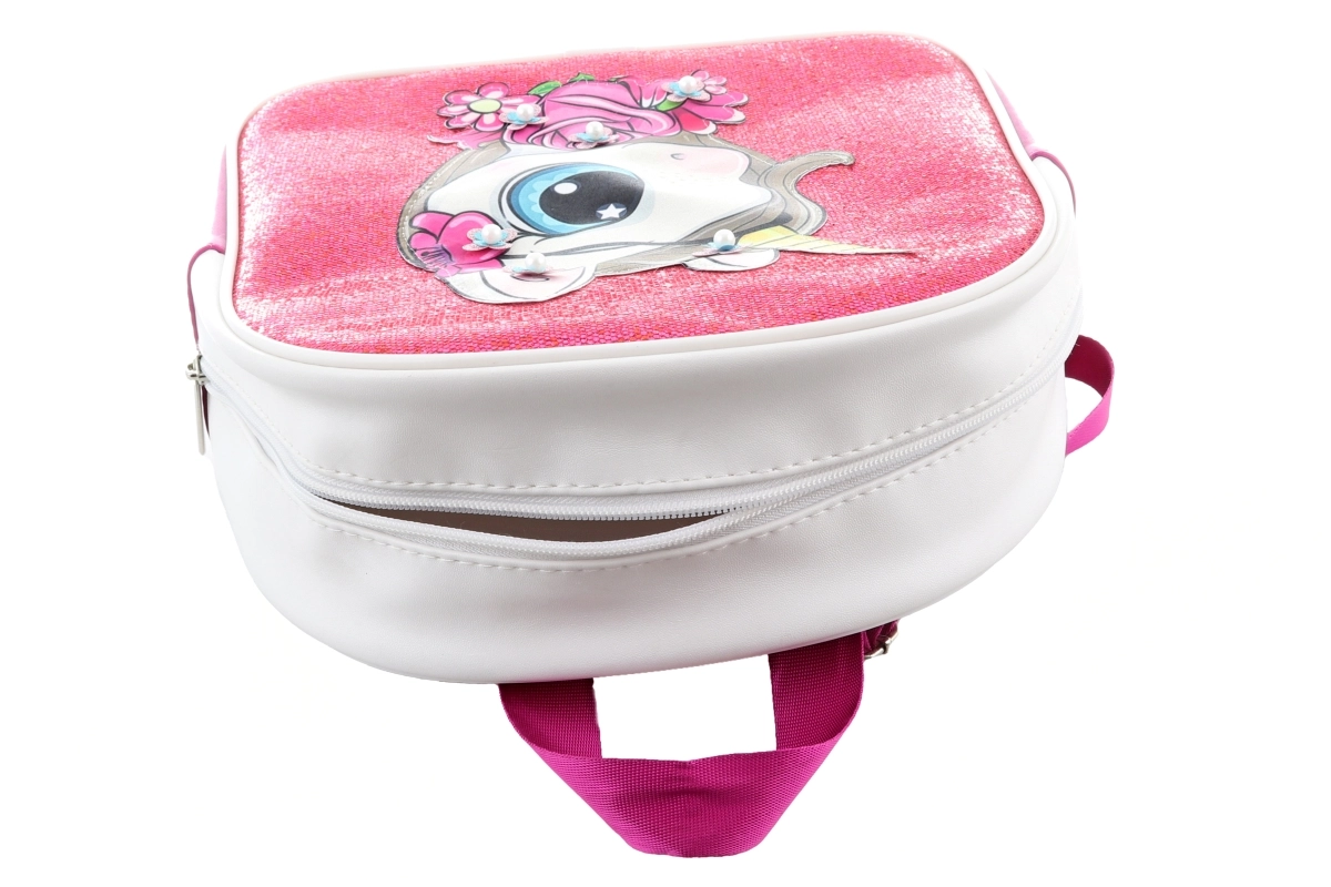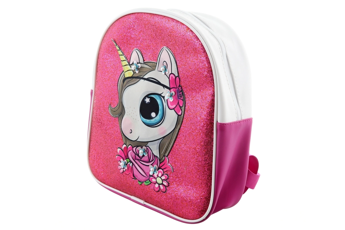 Roztomilý detský batoh s motívom jednorožca poteší malých milovníkov kúzelného sveta. Ponúka jedno priestranné vrecko na zips, trblietavý ružový predný panel a ľahkú, pohodlnú konštrukciu na každodenné nosenie do škôlky, na výlety aj k babičke.