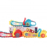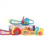 Zábavná detská motorová píla na batérie poteší malých kutilov realistickými efektmi. Svieti, vydáva zvuky, vo vnútri sa točia ozubené kolieska a pohybuje sa pás. Napájanie zabezpečujú 3× AA batérie (nie sú súčasťou balenia).