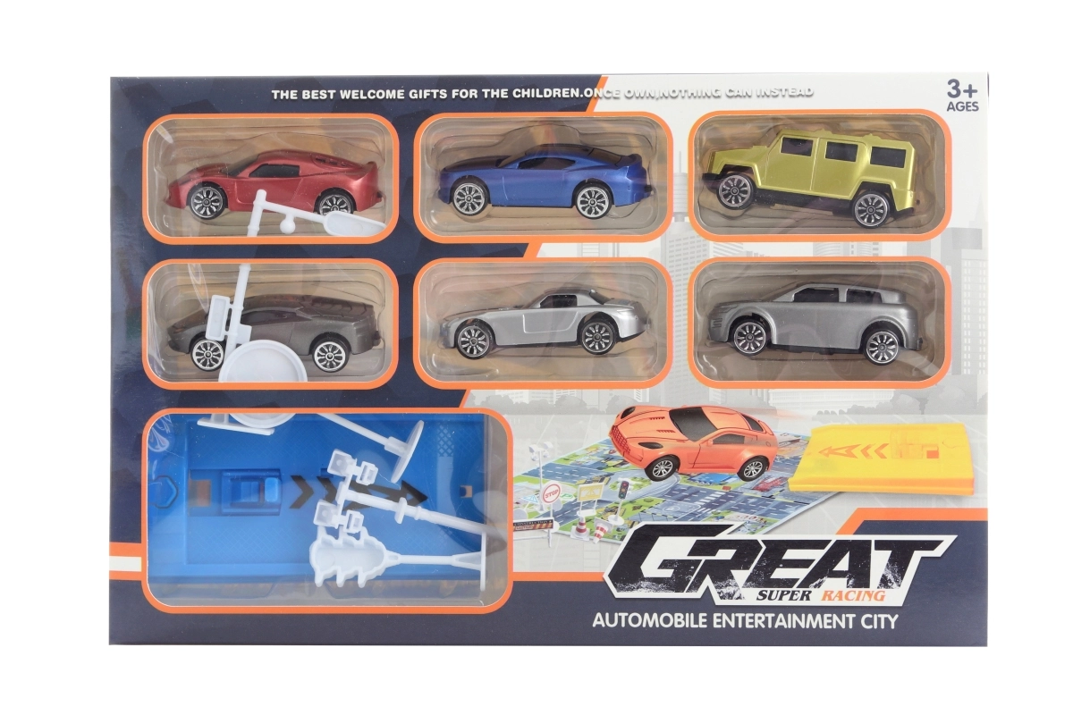 Súprava vystreľovacích autíčok so značkami a dráhou