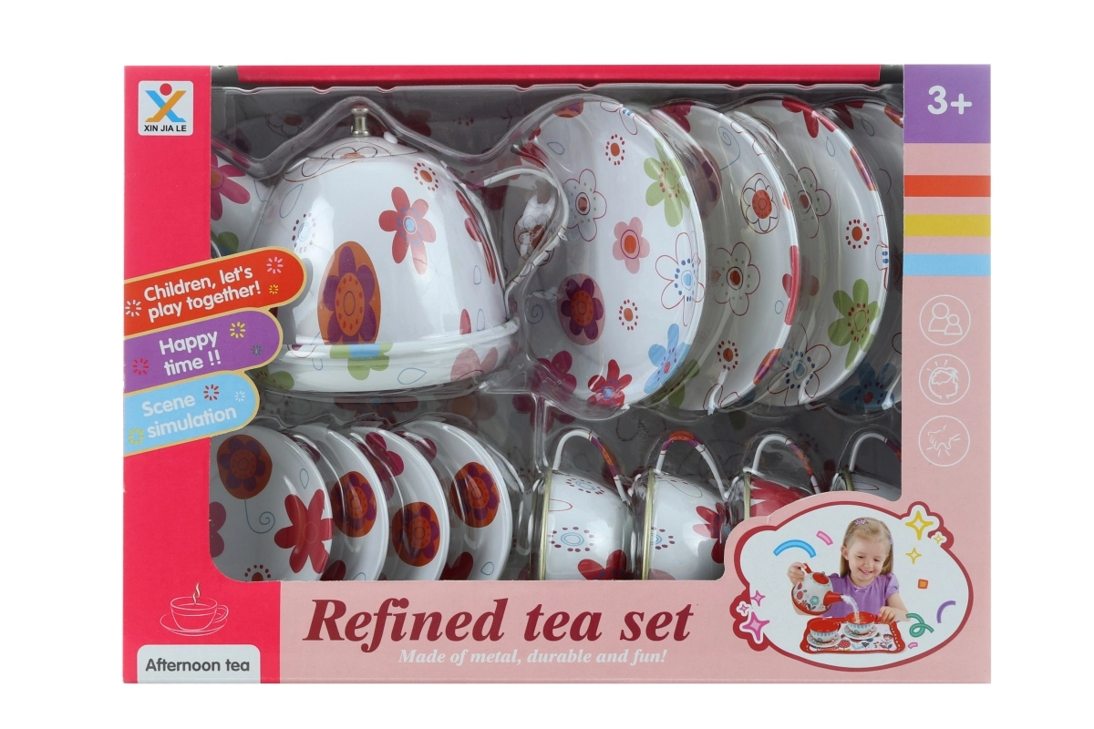 Roztomilý plechový čajový set s kvetinovým motívom poteší každú malú gazdinku. Ideálny na detské čajové posedenia a rozvoj sociálnej hry. Obsahuje všetko potrebné na servírovanie a je bezpečný pre deti od 3 rokov. Ľahký plech, kvetinový dizajn a praktické balenie v krabici robia z tohto setu skvelý darček.