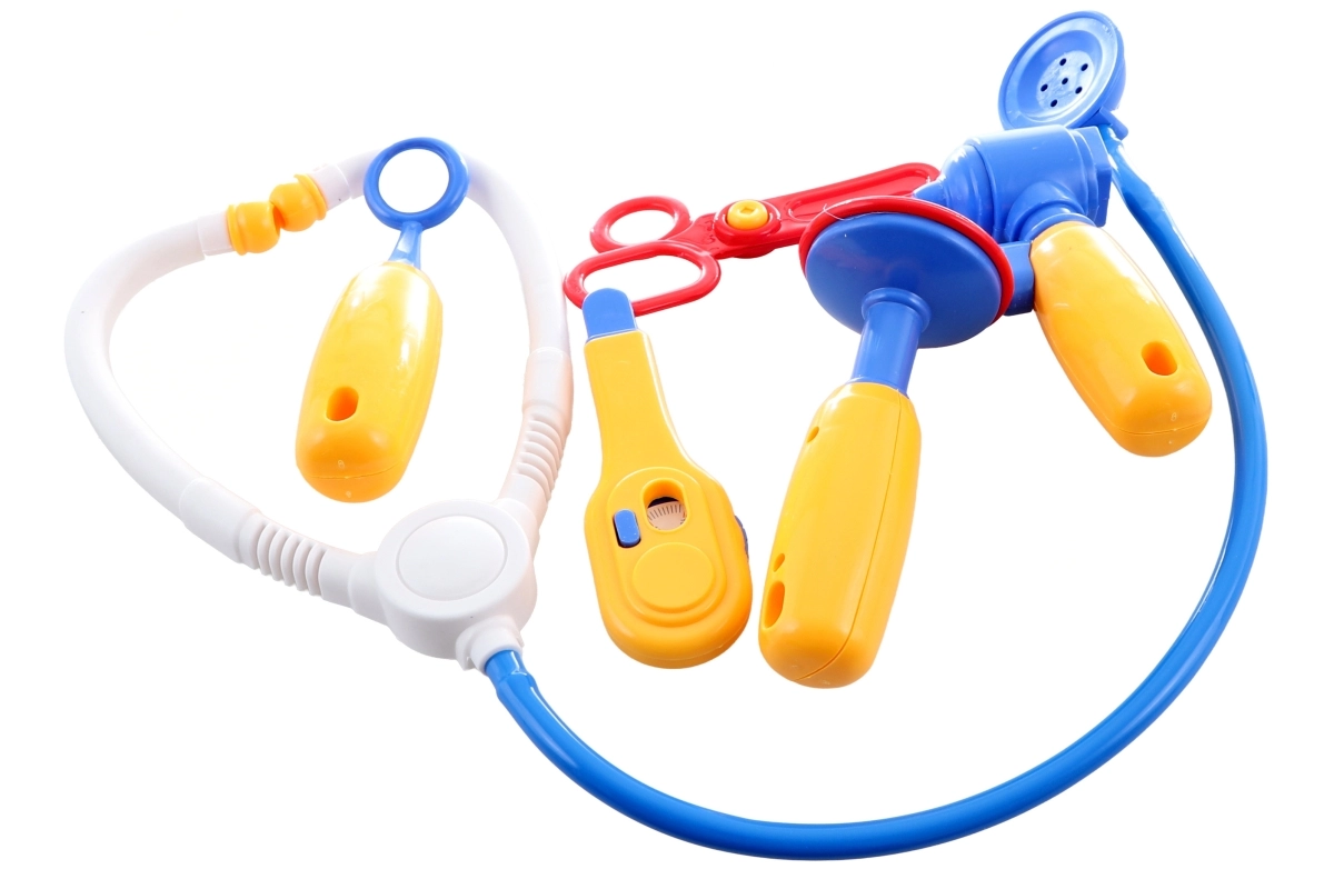Ľahké plastové nástroje ako stetoskop, teplomer či injekcia na hravé vyšetrovanie bez rizika.
