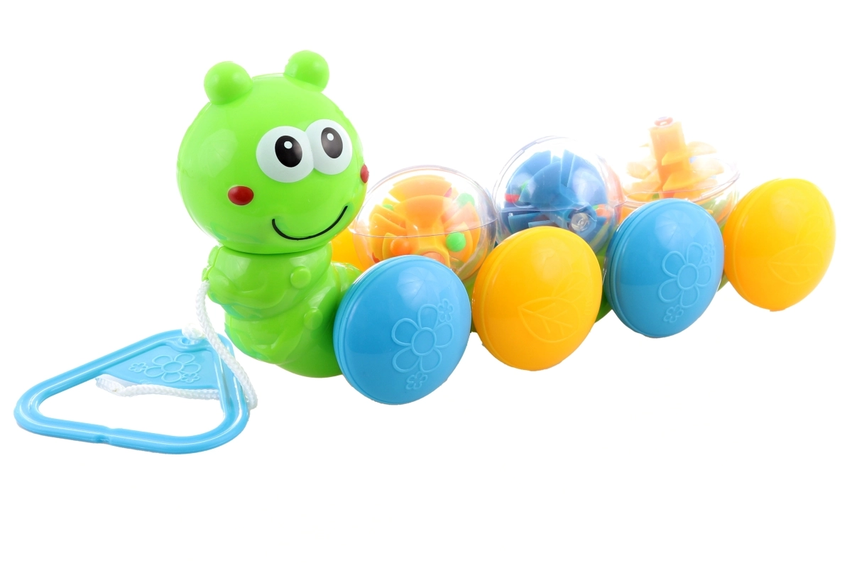 Táto veselá ťahacia húsenica je ideálny spoločník pre deti, ktoré začínajú objavovať svet na vlastných nožičkách. Vďaka praktickej šnúrke si ju môžu ťahať za sebou, čo prirodzene podporuje rozvoj hrubej motoriky, koordinačných zručností a rovnováhy.