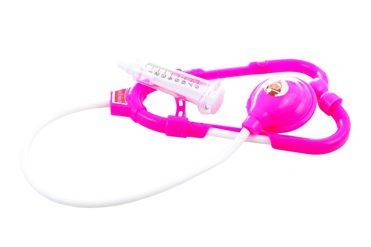 Súčasťou balenia je detský stetoskop a injekcia s oblými tvarmi pre bezpečný a kreatívny role-play. Deti sa učia starať a rozvíjajú empatiu.