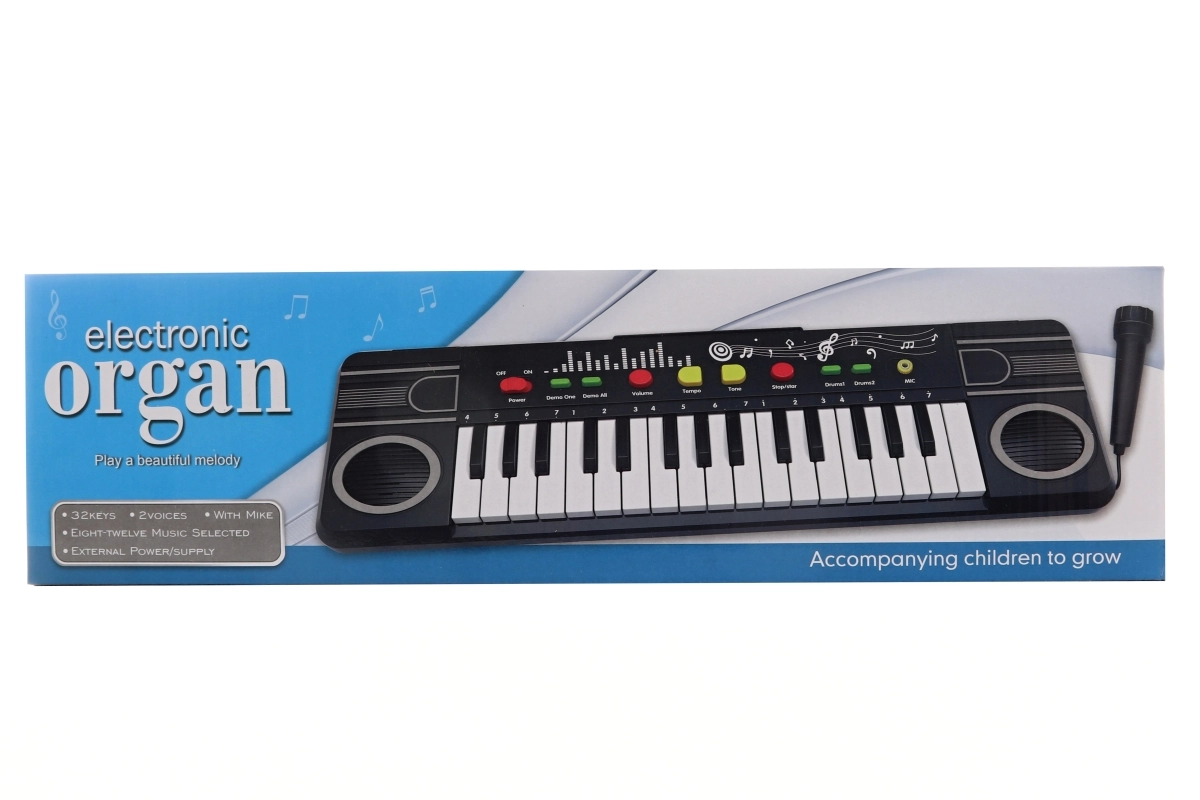 Zábavné detské piáno na batérie s 32 klávesami a integrovaným mikrofónom rozvíja hudobný sluch aj kreativitu. Ľahká plastová konštrukcia, jednoduché ovládanie a napájanie 3× AA batériami (nie sú súčasťou balenia) z neho robia skvelú voľbu pre deti od 3 rokov.