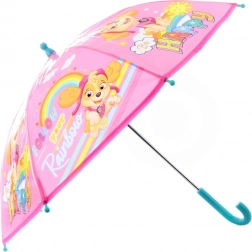 Tento štýlový ružový dáždnik s veselými obrázkami šteniatok, dúh a nápismi ako „Be Happy“ a „Follow your Rainbow“ poteší každého malého fanúšika TLAPKOVEJ HLIADKY. Vďaka kupolovému tvaru poskytuje spoľahlivú ochranu pred dažďom a zároveň skvelo vyzerá.
