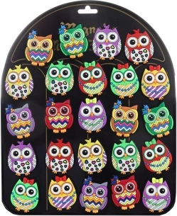 Roztomilé magnetky s motívom sovičiek skrášlia chladničku, tabuľu aj nástenku. Balenie obsahuje 24 kusov a magnetickú dosku na prehľadné uloženie. Magnety sú z mäkkého plastu, majú rozmer cca 4,5 × 3,5 cm a sú určené na dekoratívne účely.