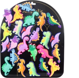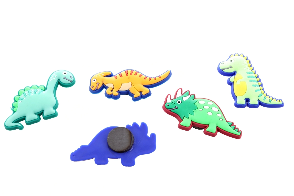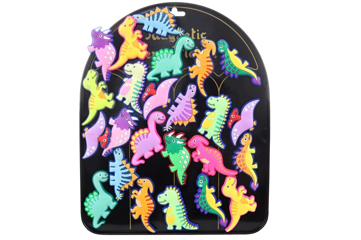 Veselé magnetky s motívom dinosaurov potešia deti aj dospelých. Každý magnet má približne 5 × 5 cm, je z mäkkého plastu a je určený na dekoratívne účely.