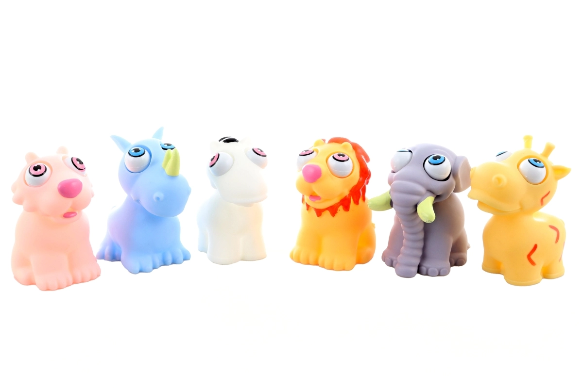 Objavte zábavné stláčacie zvieratká s veľkými očami, ktoré pri stlačení vtipne vystrelia očká von. Vďaka mäkkému plastu sa príjemne stláčajú a sú skvelé na precvičenie jemnej motoriky aj ako antistresová hračka pre deti od 3 rokov.