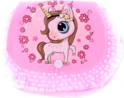Táto štýlová detská kabelka s motívom jednorožca zaujme na prvý pohľad. Jemný plyšový materiál je príjemný na dotyk a kompaktná veľkosť je perfektná na kľúče, vreckovky, malú peňaženku či drobné poklady. Vďaka nastaviteľnému popruhu možno kabelku pohodlne nosiť cez rameno.