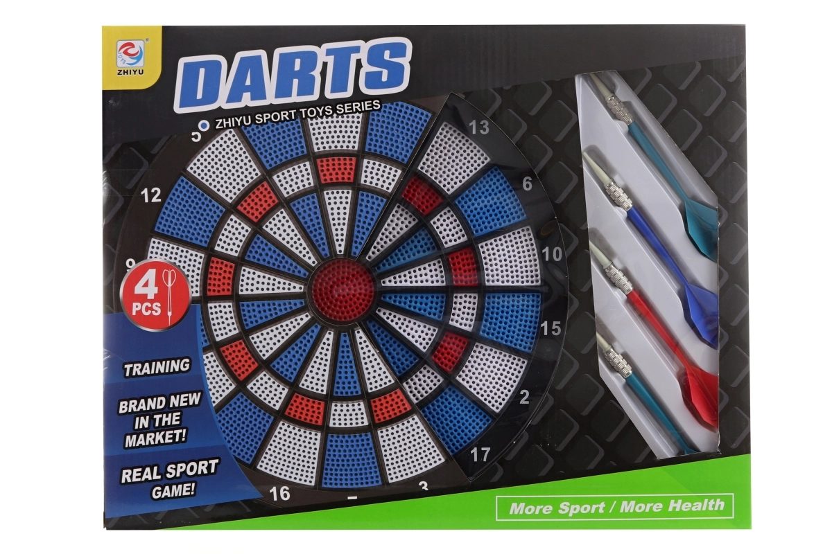 Táto kompaktná sada prináša zábavu aj tréning presnosti v jednom. Terč s priemerom cca 28 cm je skvelý pre začiatočníkov aj nenáročných hráčov. Štyri priložené šípky s plastovým telom a kovovým ťažiskom poskytujú vyvážený let a komfortné uchopenie.