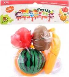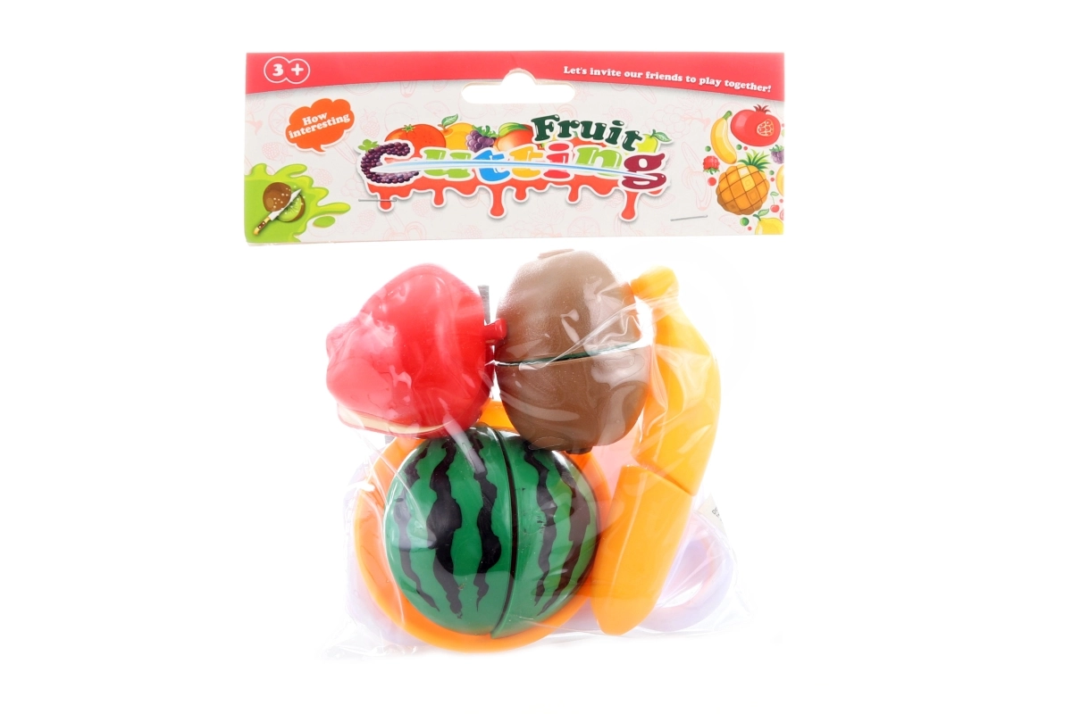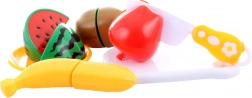 Súčasťou balenia sú štyri druhy ovocia (jablko, kivi, banán, melón), doska, nožík a tanierik. Ľahký materiál, bezpečné zaoblené hrany a odolné vyhotovenie robia zo sady perfektný doplnok detskej kuchynky aj hry na obchod.