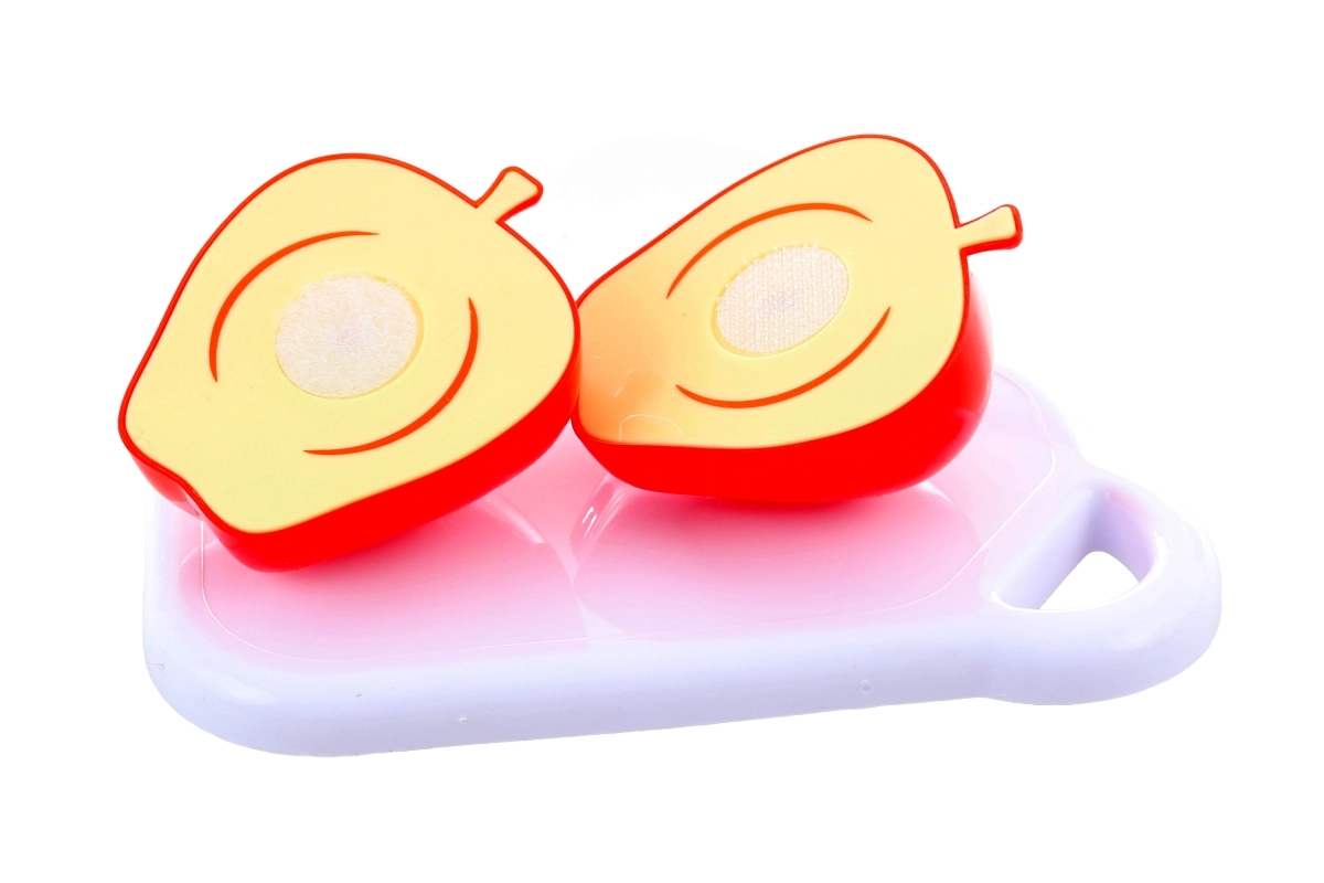 Súčasťou je detský nožík, doska a tanierik. Deti môžu ovocie nakrájať, naservírovať a učiť sa o príprave jedla hravou formou.