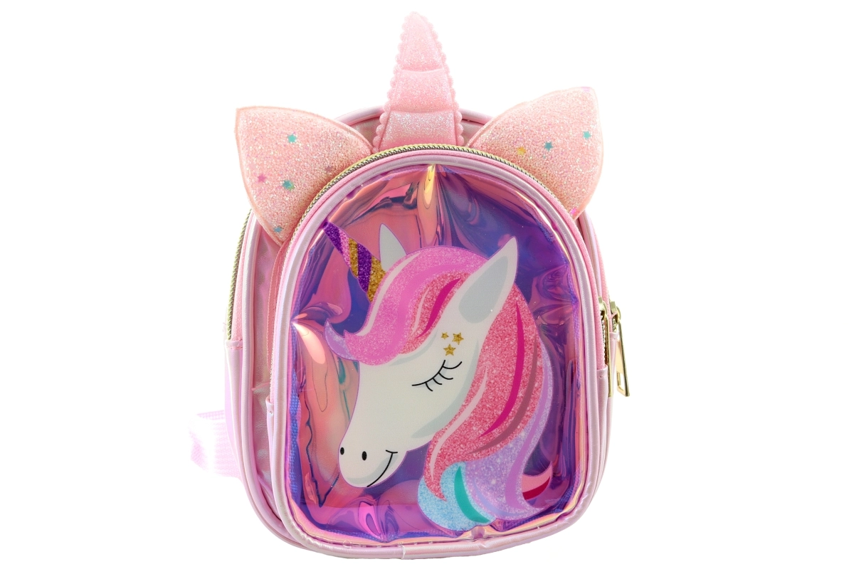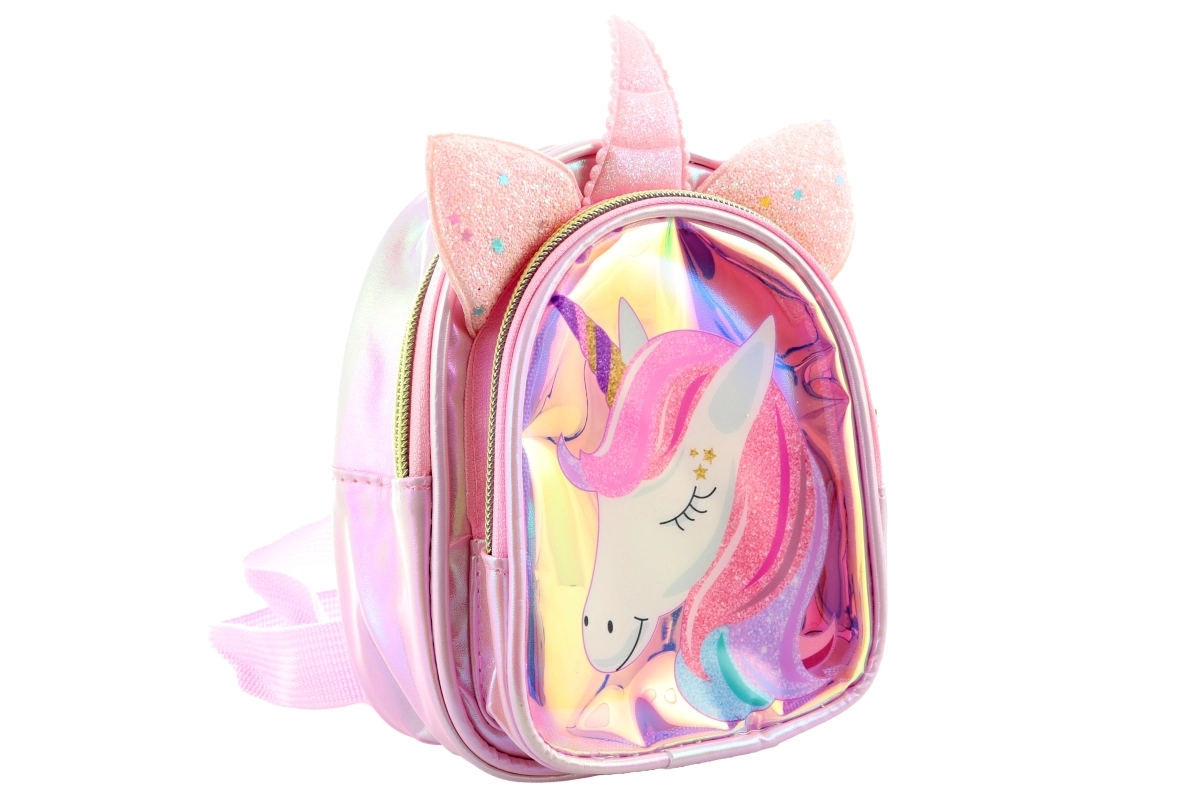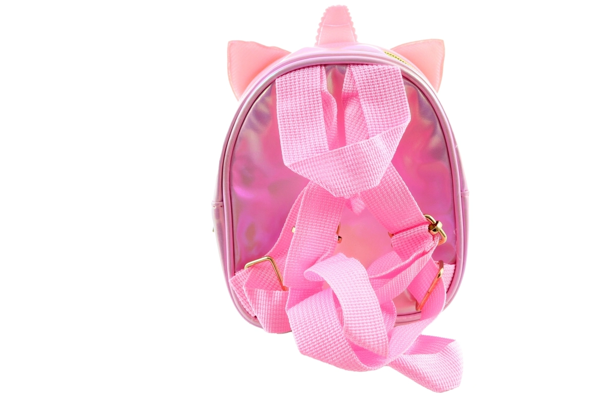 Iridescentný, trblietavý povrch a roztomilé 3D detaily (ušká a roh) robia z batôžka výnimočný doplnok na každý deň.