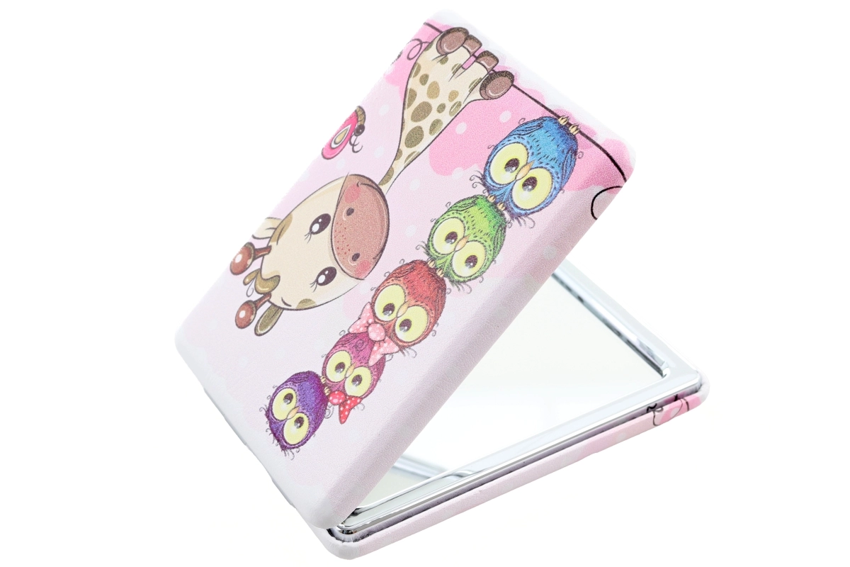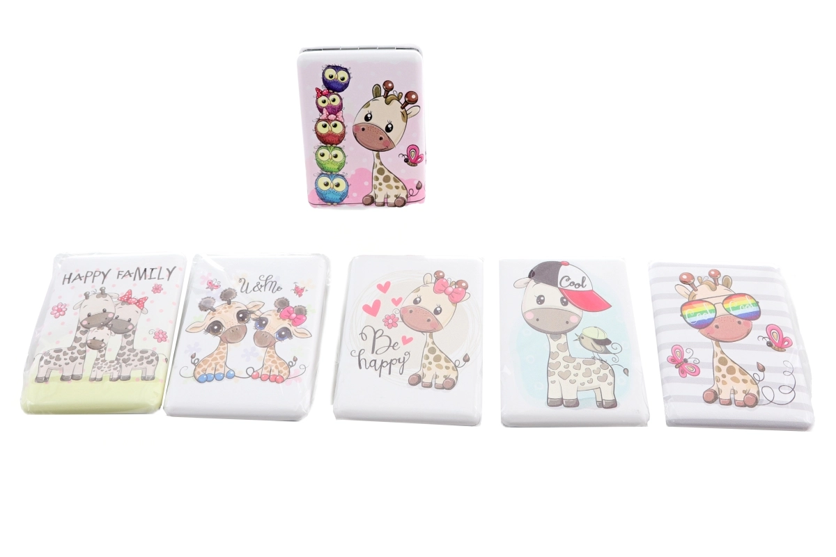 Štýlové vreckové zrkadielko s motívom veselých žiráf je ideálne do kabelky aj na cesty. Ponúka kompaktné rozmery 6 × 8,5 × 1,5 cm a po otvorení má zrkadlo na oboch stranách pre pohodlnú kontrolu vzhľadu. Dostupné je v niekoľkých rôznych dizajnoch – zasielame podľa aktuálnej skladovej dostupnosti. Balené v sáčku. Výrobok nie je hračka.
