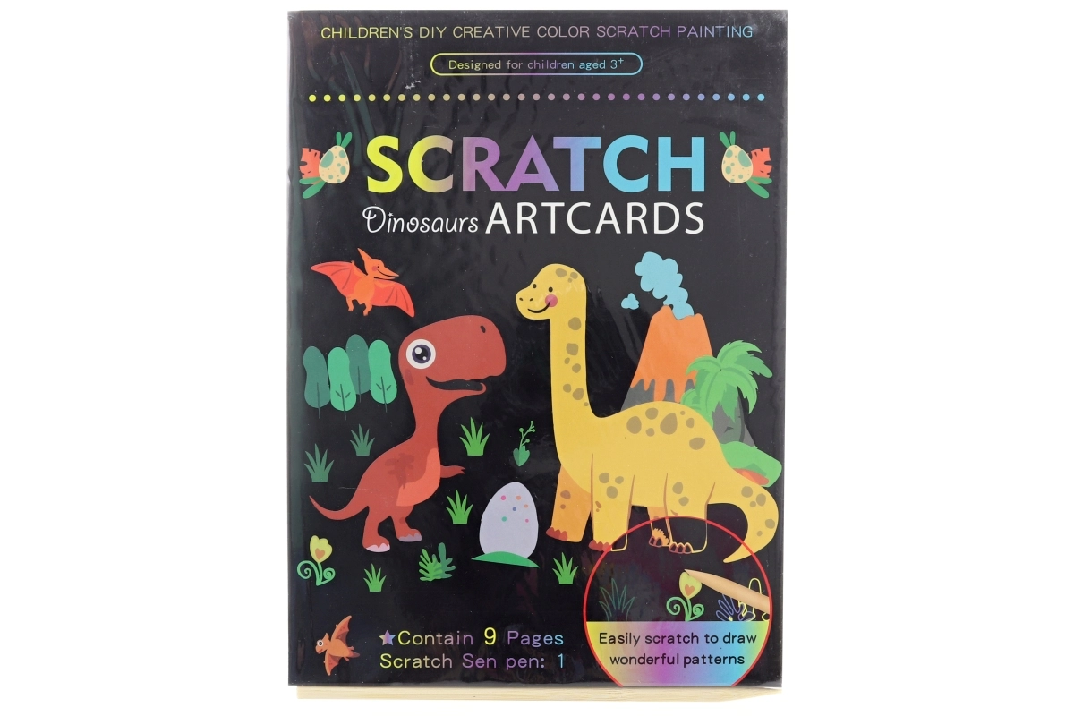 Uvoľnite fantáziu s kreatívnou sadou vyškrabovacích obrázkov s motívmi dinosaurov. Stačí použiť priloženú drevenú pomôcku a postupne odkrývať farebné vrstvy, ktoré vytvárajú efektné ilustrácie. Vďaka kompaktným rozmerom sa sada hodí na cesty, do školy aj na domáce tvorenie.