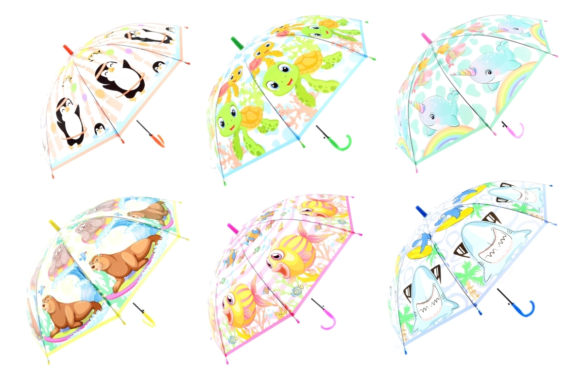Hravé motívy morských aj suchozemských zvieratiek premenia každý krok na radosť. Každý dáždnik je originálny – motív dodávame podľa skladovej dostupnosti.