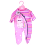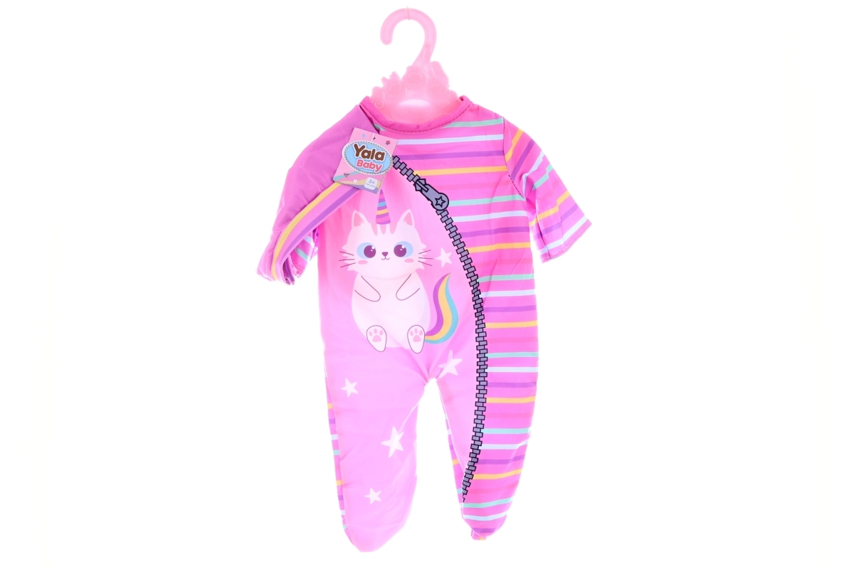 Doprajte svojej bábike nový štýl s roztomilou sadou oblečenia s mačičkou. Set obsahuje dupačky s dĺžkou približne 32 cm (od ramena) a čiapočku, ktoré sa ľahko obliekajú a skvele sedia väčšine bežných bábik tejto veľkosti. Vďaka jemnému spracovaniu je obleček vhodný na každodenné hranie.