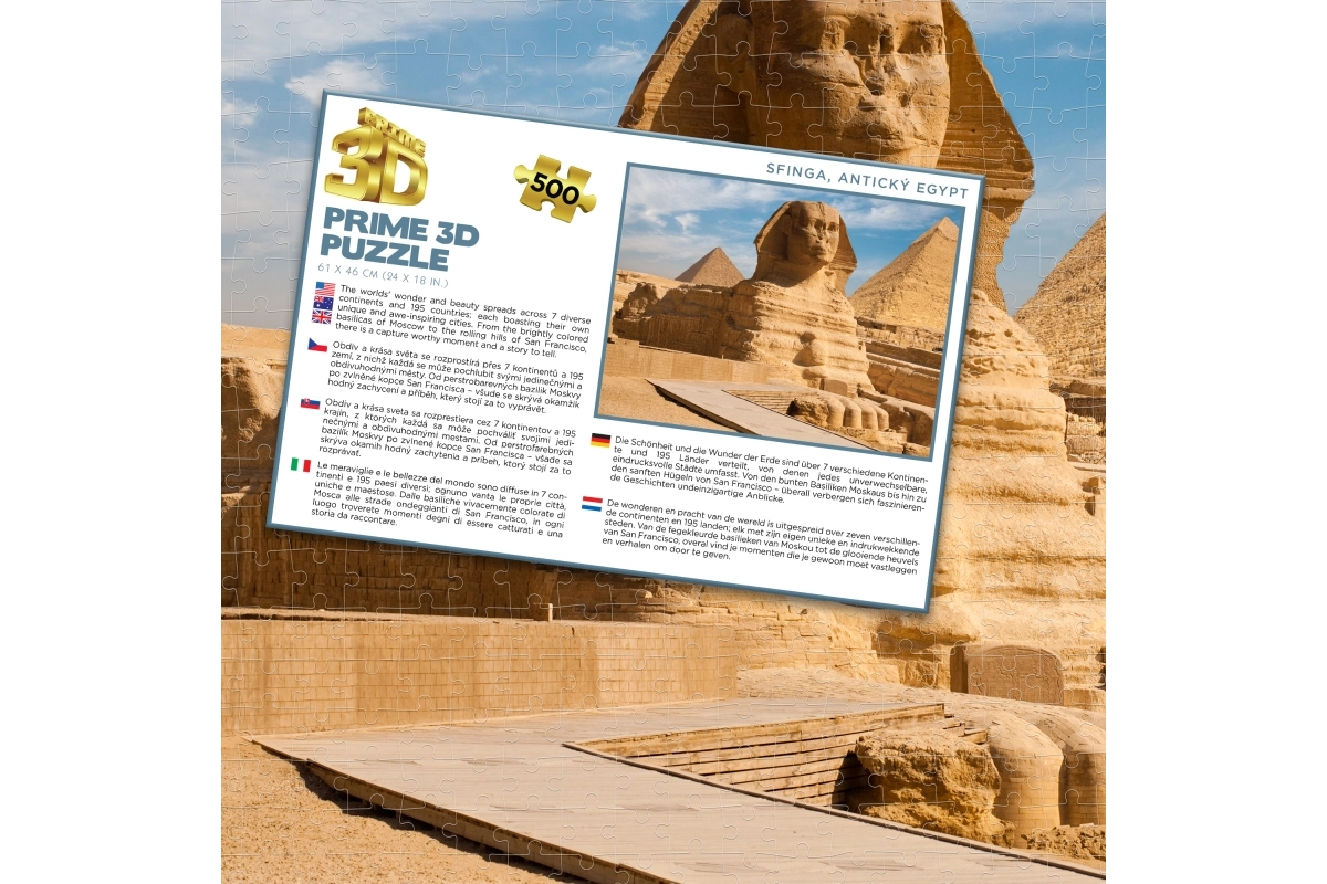 Vstúpte do ríše faraónov a zložte si legendárnu Sfingu priamo u seba doma. Toto kvalitné 3D puzzle kombinuje zábavu, vzdelávanie a rozvoj jemnej motoriky. Vďaka 500 pevným dielikom je ideálne pre deti aj dospelých, ktorí milujú výzvy a historické motívy.