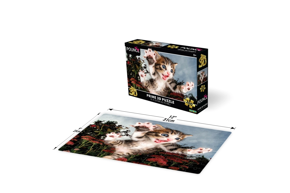 Objavte čaro priestorového obrazu: tento kvalitný 3D puzzle s motívom skákajúceho mačiatka prináša živé farby a realistickú hĺbku, ktorá ožije s každým uhlom pohľadu. Vďaka kompaktným rozmerom je perfektný na popoludňajšie skladanie aj ako dekorácia do detskej izby.