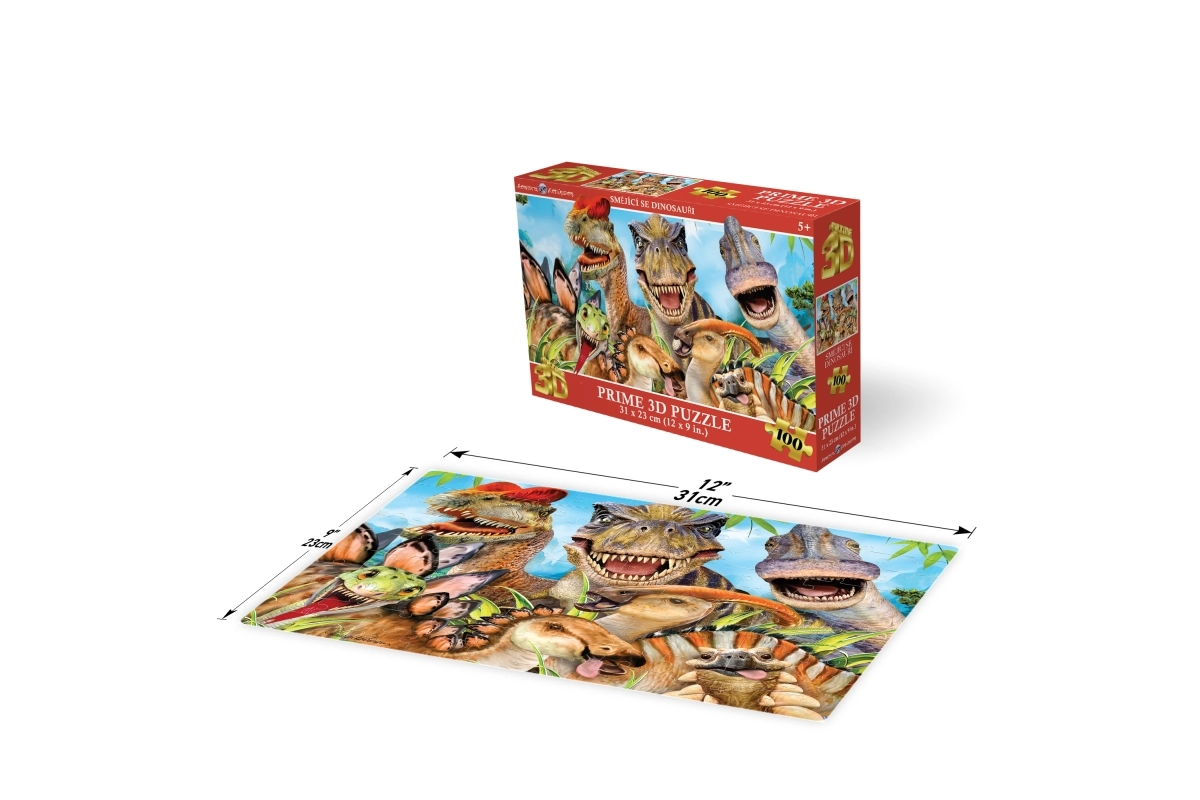 Objavte zábavné 3D puzzle so sympatickým motívom usmievajúcich sa dinosaurov. Sada obsahuje 100 dielikov a je ideálna pre deti od 5 rokov. Hotový obrázok má rozmery 31 × 23 cm, balenie je kompaktné 23 × 15 × 5 cm – skvelé na doma aj na cesty.