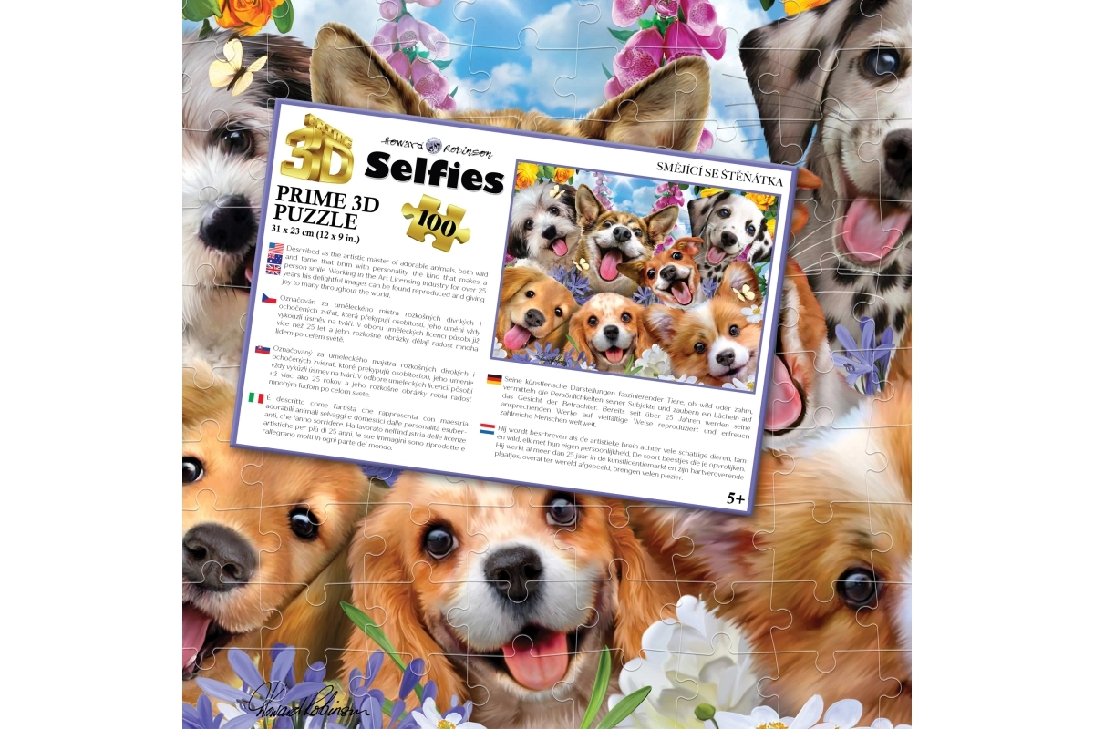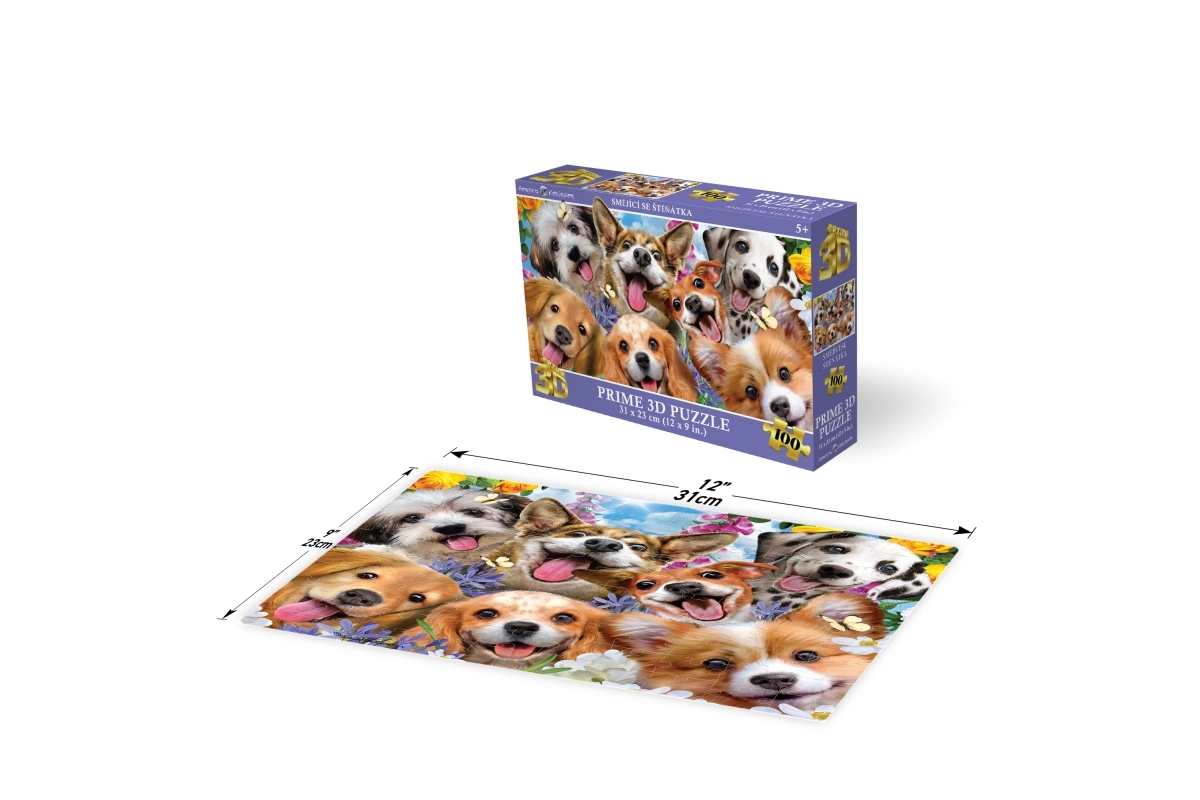Zábavné 3D puzzle s roztomilým motívom usmiatych šteniatok poteší malých milovníkov zvierat. Obsahuje 100 dielikov, podporuje rozvoj jemnej motoriky, trpezlivosti a priestorovej predstavivosti. Po zostavení vznikne obrázok s rozmerom 31 × 23 cm, vhodné pre deti od 5 rokov.