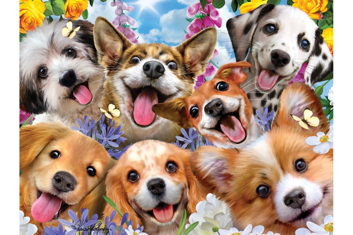 - Roztomilý motív usmiatych šteniatok pre radosť z každého dielika