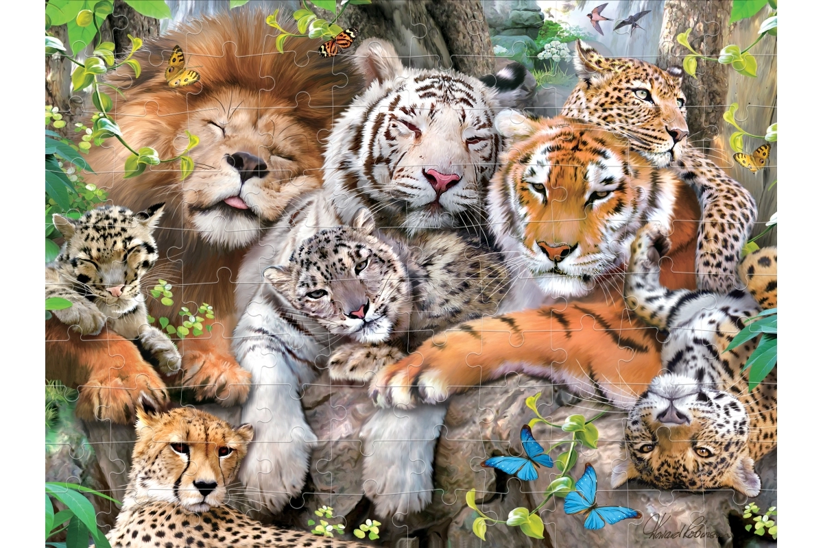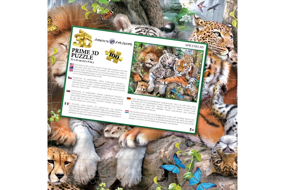Vstúpte do sveta divokej prírody s pôsobivým motívom spiacich šeliem. Toto 3D puzzle ponúka skvelú kombináciu zábavy a učenia – deti si precvičia priestorové vnímanie, sústredenie aj koordináciu oko–ruka. Vďaka 100 presne vyrezaným dielikom je skladanie príjemnou výzvou pre začínajúcich aj pokročilejších malých staviteľov.