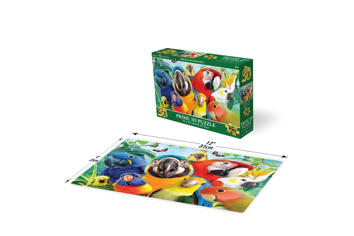 Vstúpte do sveta tropických farieb s 3D puzzlom Usmievaví papagáje. Vďaka 100 kvalitným dielikom a rozmeru hotového obrázku 31 × 23 cm je skladanie ideálne na popoludňajšiu zábavu aj rozvoj detských zručností. Dieliky do seba presne zapadajú a motív veselých papagájov poteší každého malého tvorcu.