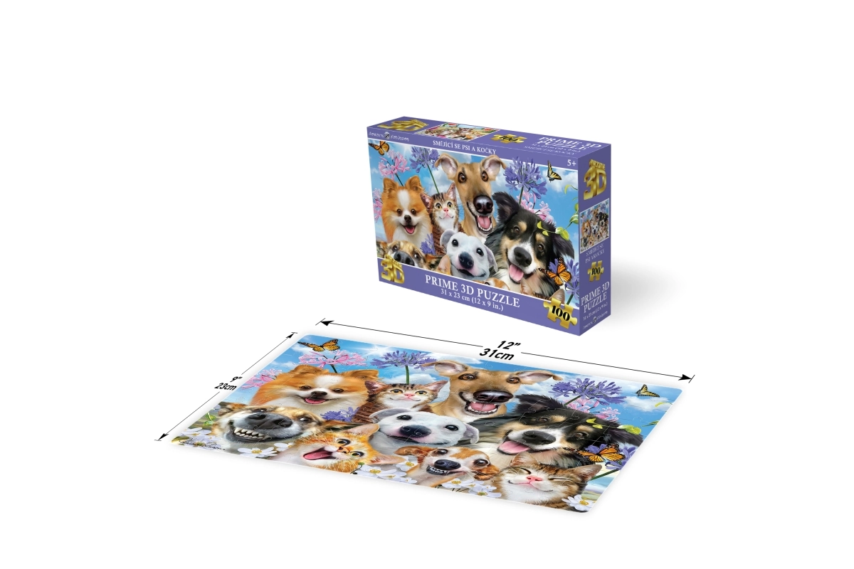 Užite si zábavu pre celú rodinu s 3D puzzle s motívom usmiatych psov a mačiek. Skladačka so 100 dielikmi ponúka krásny 3D efekt, rozmer poskladaného obrázka 31 × 23 cm a je ideálna pre deti od 5 rokov.