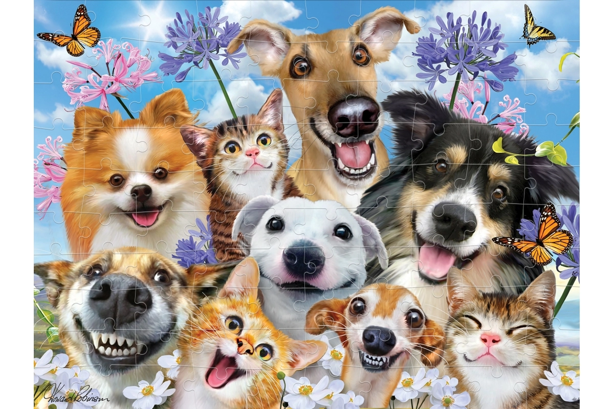 Zasmejte sa spoločne pri skladaní 3D puzzle so zábavným motívom usmiatych psov a mačiek. Vďaka 100 dielikom je puzzle skvelé na tréning trpezlivosti, sústredenia a jemnej motoriky. Hotový obrázok s rozmerom 31 × 23 cm vynikne v detskej izbe.
