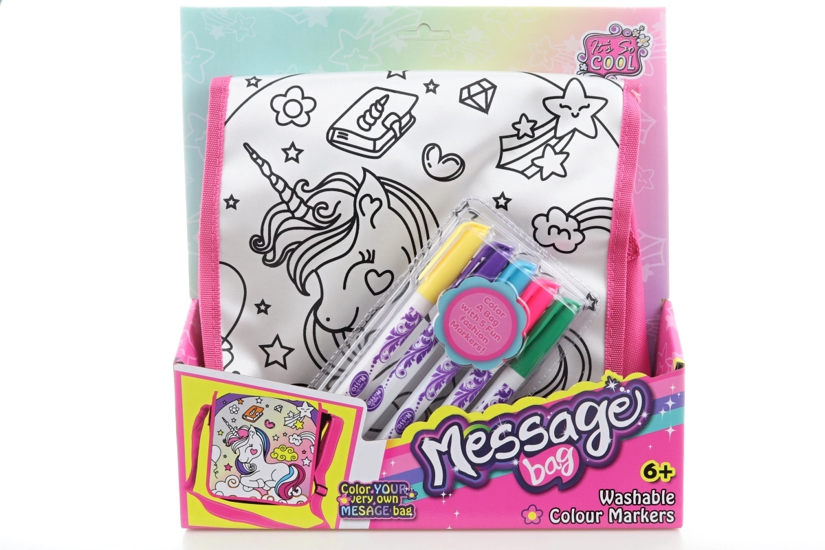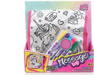 Kreatívna maľovacia kabelka s roztomilým motívom jednorožca poteší každé malé tvorivé dieťa. Súčasťou je nastaviteľný ružový popruh a sada 5 farieb na okamžité vyfarbovanie. Kabelka má praktické zapínanie na suchý zips a je ideálna na drobnosti aj na cesty. Podporuje kreativitu, jednoduché používanie a zábavu pre deti 3+.