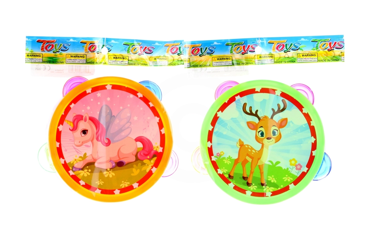 Rozveseľte detské hudobné chvíľky touto farebnou tamburínou so zvieracím motívom. Má priemer 13,5 cm, je vyrobená z odolného plastu a je ideálna pre deti od 3 rokov. Ľahká a ľahko uchopiteľná pomáha rozvíjať rytmus, motoriku a sluch.