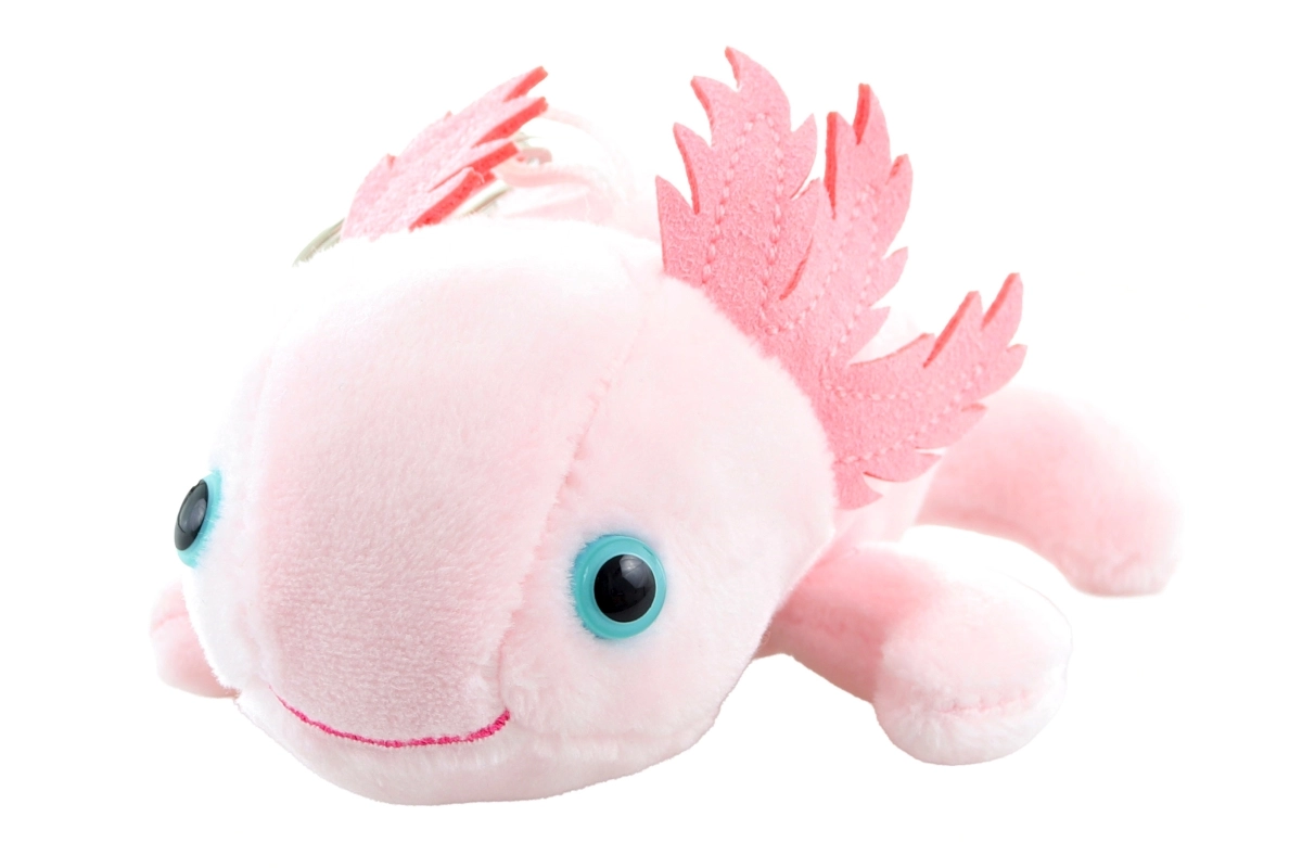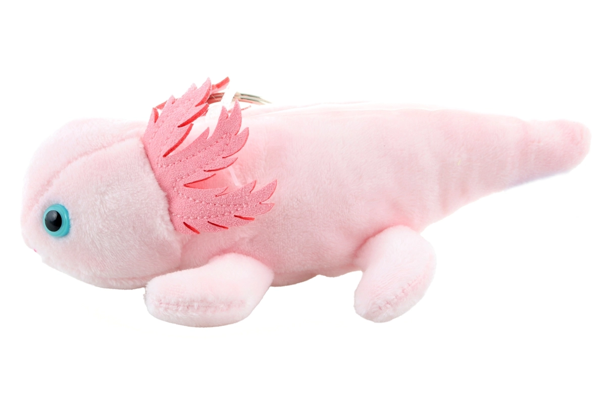 Obohaťte svoj každodenný štýl o hravý doplnok – hebkú ružovú kľúčenku axolotl. Príjemný plyš, roztomilé žiabrové strapce a výrazné očká potešia deti aj dospelých. Kovový krúžok zaistí spoľahlivé pripnutie na kľúče, kabelku či školský batoh.