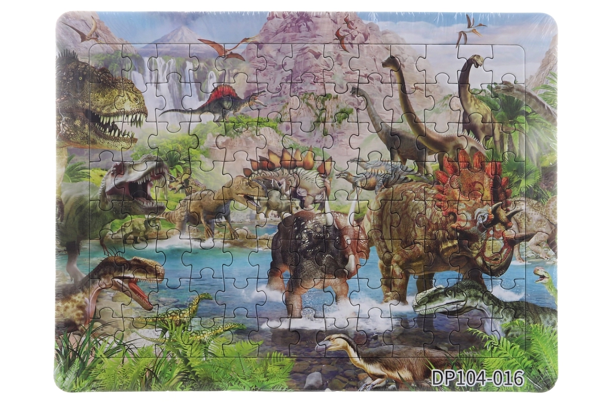 Táto farebná skladačka s dinosaurami poteší každého malého milovníka praveku. Vďaka 104 dielikom deti trénujú trpezlivosť, sústredenie a vizuálne vnímanie, zároveň si užijú množstvo zábavy pri objavovaní detailov na hotovom obrázku.