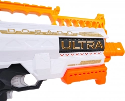 Nerf Ultra Dorado je rýchla a spoľahlivá poloautomatická pištoľ pre všetkých malých aj veľkých strelcov od 8 rokov. Otvorený bubienok na 6 šípok umožňuje bleskové dopĺňanie munície, zatiaľ čo motorový pohon na batérie zaistí plynulé a svižné vystreľovanie.