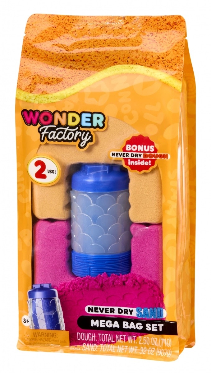 Kinetický piesok WONDER FACTORY Never Dry je zmyslový materiál pre deti, ktorý zostáva stále vláčny a poddajný. Možno ho stláčať, vaľkať, krájať aj tvarovať do detailných otlačkov a stavieb, bez toho, aby vysychal. Vďaka sýtym oranžovo‑červeným odtieňom je hra vizuálne atraktívna a inšpiruje k tvoreniu.