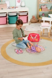 Vďaka nacvakávacím ozdobám si deti tašku prispôsobia podľa svojej nálady – podporí sa tak kreativita, jemná motorika a starostlivosť o druhých. Set zahŕňa skladaciu prebaľovaciu podložku pre pohodlné prebaľovanie kdekoľvek, plienku a drobné doplnky ako dózu na púder a krabičku na nevyhnutnosti.