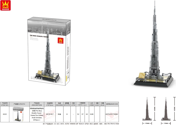 Táto detailná stavebnica z edície „budovy“ umožňuje postaviť štýlový model najznámejšieho mrakodrapu Dubaja – BURJ KHALIFA. Vďaka premysleným dielikom a obrázkovému návodu je skladanie zábavné a prehľadné a výsledný model vynikne na poličke aj pracovnom stole.
