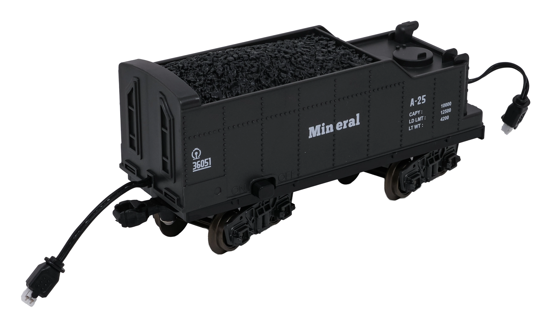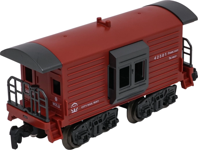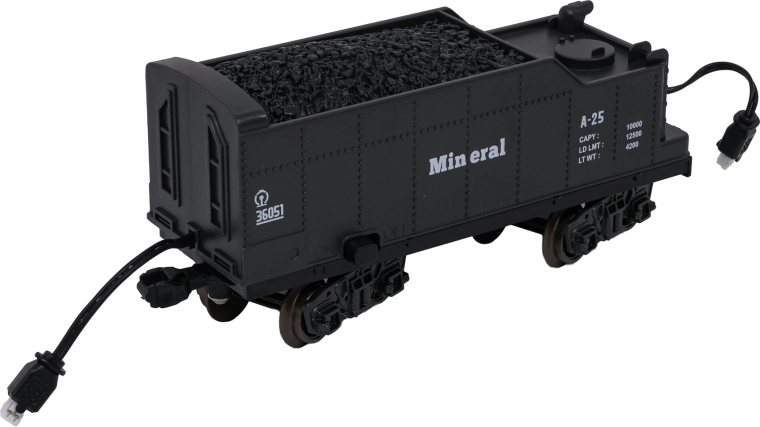 - lokomotíva, 2× osobný vozeň, vozeň s uhlím (tender), nákladný/zvierací vozeň, diely koľají, USB nabíjací kábel, skrutkovač, pipeta na vodu