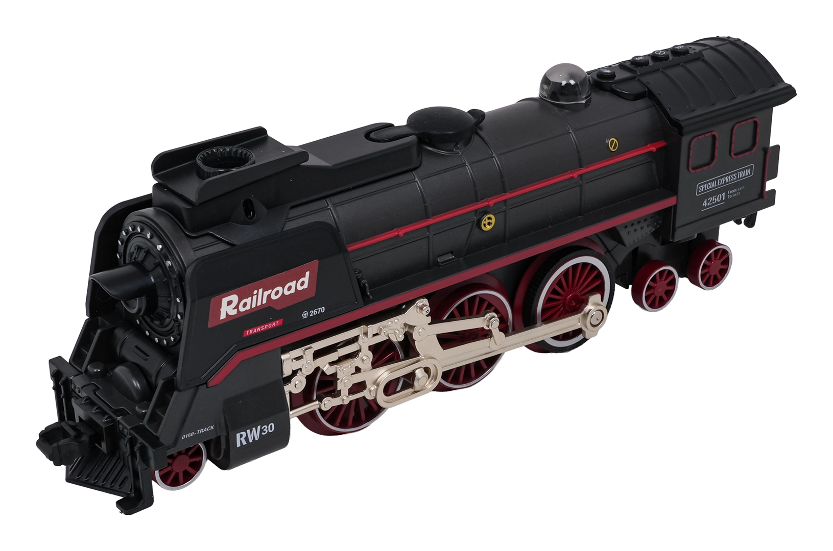 Lokomotíva počas jazdy vypúšťa dym z komína aj bokov, svieti predným reflektorom a sprevádzajú ju autentické zvuky. Dym aktivujete doplnením vody pomocou priloženej pipetky.