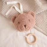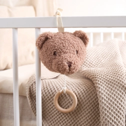 Medvedík Mika je nežná závesná hračka s hracím strojčekom, ktorá pomáha vytvoriť pokojný rytmus večerného rituálu. Stačí potiahnuť za hladký drevený krúžok a zaznie známa Brahmsova uspávanka „Dobrý večer, dobrú noc“. Vďaka mäkkému, štruktúrovanému plyšu a vyšívaným detailom je hračka bezpečná a príjemná aj pre najmenších.