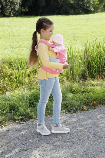Polstrované ramenné popruhy, hrudná spona a bedrový pás sa jednoducho prispôsobia rôznym výškam detí a držia bábiku stabilne.