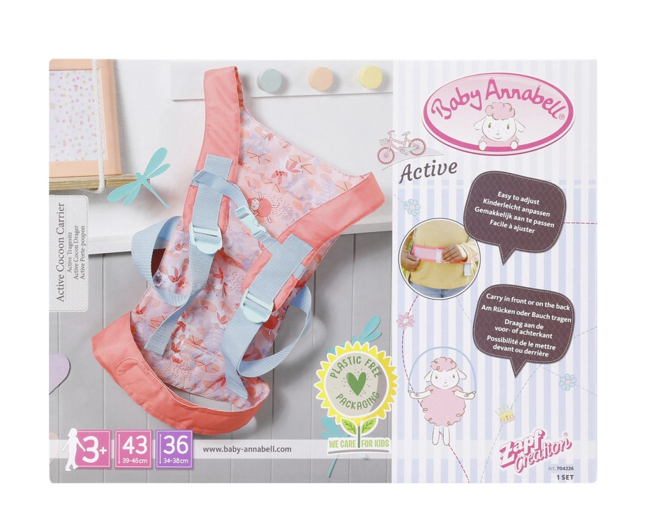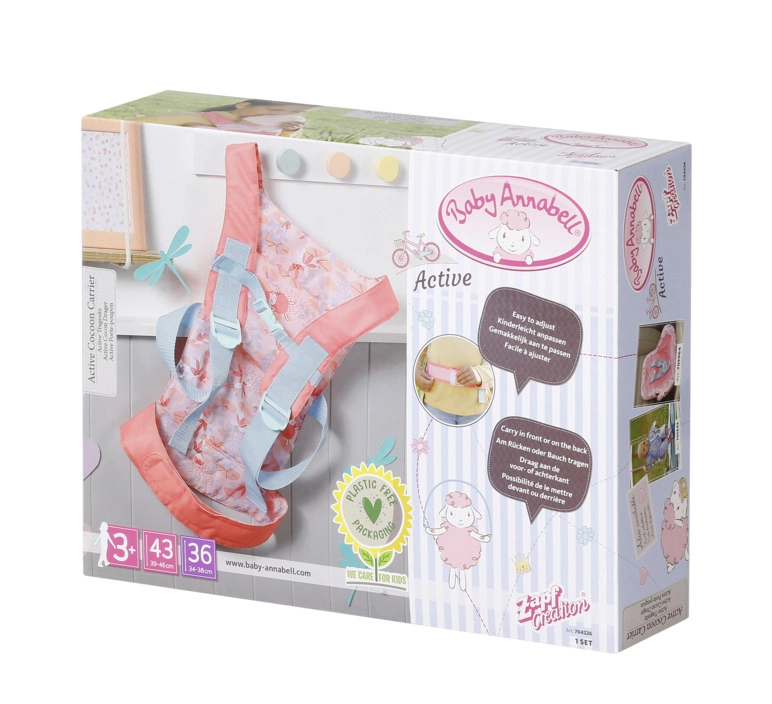 Praktická klokanka pre bábiky BABY ANNABELL je skvelá pre malých opatrovateľov, ktorí chcú mať svoju bábiku stále pri sebe. Vďaka možnostiam nosenia vpredu aj na chrbte a dvom predným polohám sedenia (tvárou dopredu alebo k dieťaťu) si deti užijú pohodlné a bezpečné hranie na každý výlet.