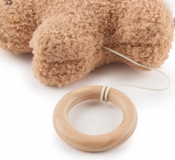 Príjemný plyš a drevený krúžok pre malé rúčky