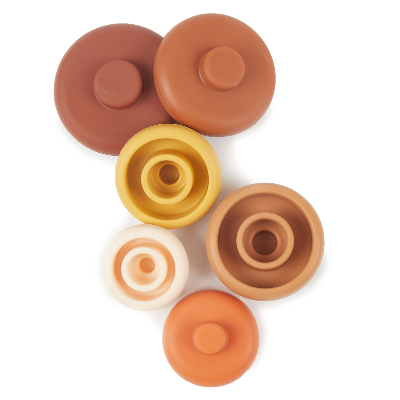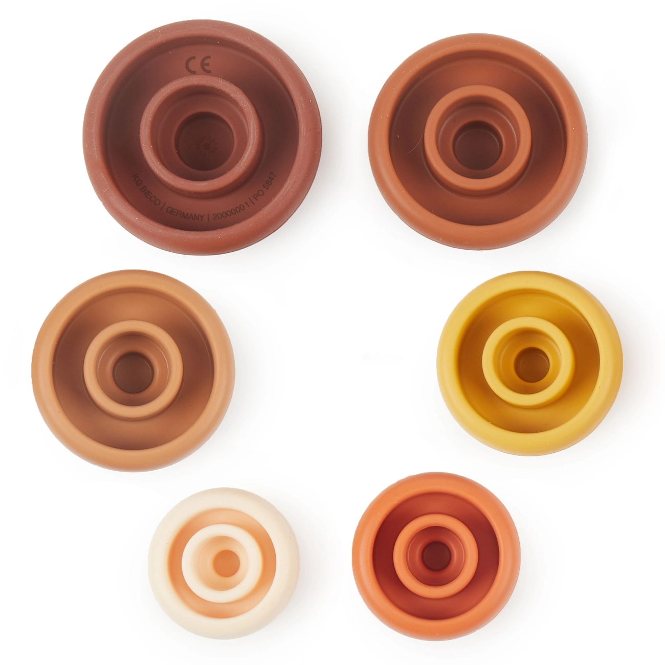 Táto 6-dielna silikónová stohovacia veža Bieco Chocolate Bliss prináša deťom nekonečné možnosti stavanía, triedenia a objavovania. Mäkký, pritom odolný materiál je príjemný na dotyk, nešmýka sa a ľahko sa čistí – ideálny na každodenné hranie doma, vonku aj vo vode.