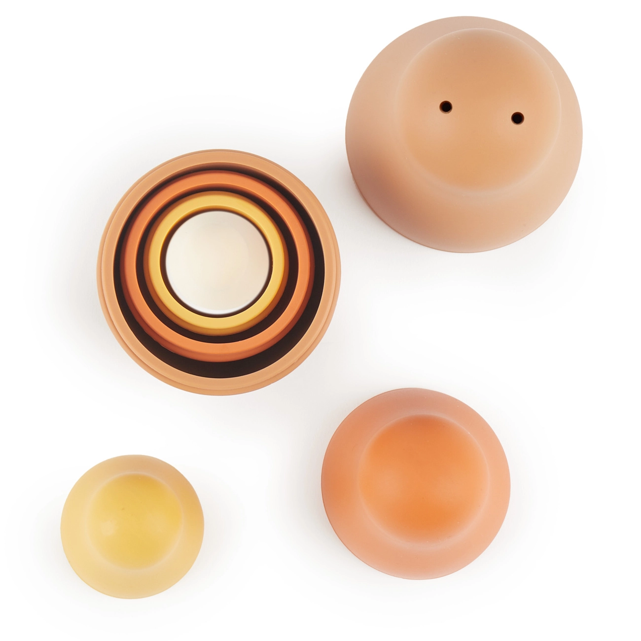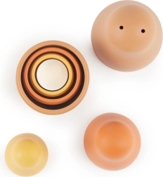 Táto sada 4 matriošiek zo 7 dielov nadchne deti svojím jednoduchým a múdrym dizajnom. Dieliky sa do seba ľahko vkladajú, čo prirodzene podporuje tréning koordinácie oko–ruka a vnímanie veľkostí. Silikónové prevedenie je príjemne mäkké, no zároveň odolné – ideálne na každodenné hranie.