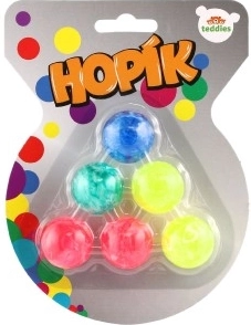Skákací mičík, teda hopík, je loptička, ktorá sa krásne odráža od zeme. Táto sada 6 farebných mramorovaných kusov je neobyčajná. Skúste pustiť všetkých šesť hopíkov na zem! Alebo sa podeľ s kamarátmi! Priemer hopíka: 3 cm Vhodné pre deti od 3 rokov