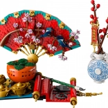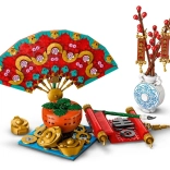 Vytvorte si doma atmosféru jarných osláv s detailným modelom LEGO Spring Festival Prosperita. Táto zberateľská dekorácia prináša ikonické motívy, ktoré symbolizujú lásku, zdravie, blahobyt a radosť. Súčasťou je elegantný vejár s dvoma strakami – poslom dobrých vecí, ktoré prichádzajú v páre – a bohaté aranžmány s červenými plodmi, persimonom, zlatými odlievkami a zvitkom s čínskym znakom pre „jar“.
