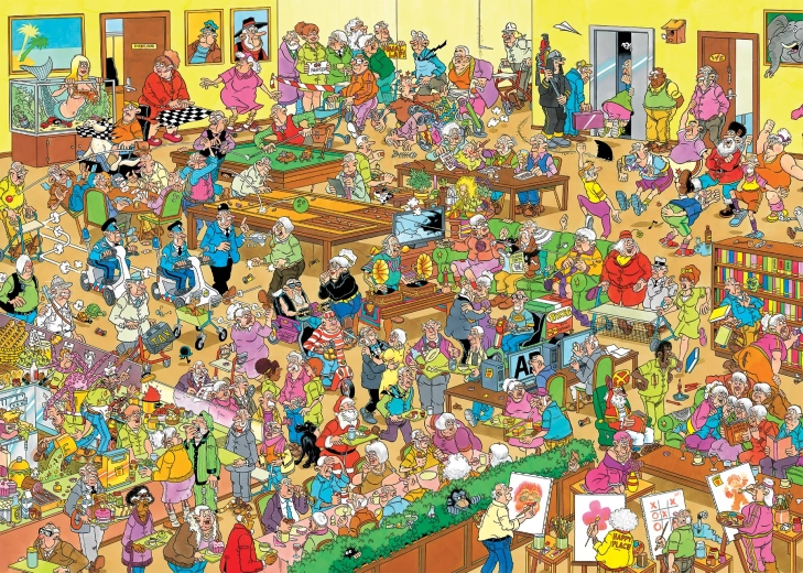 Objavujte jeden vtip za druhým v originálnej ilustrácii „Domov dôchodcov“ od autora Jan van Haasteren, vytvorenej exkluzívne pre značku JUMBO. Typický štýl plný humoru, množstva postáv a nečakaných situácií vás vtiahne a nepustí.